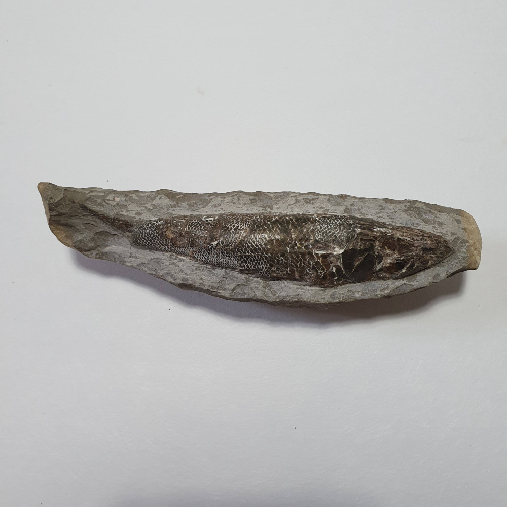 Prachtig fossiel van een vis in matrix, Rhacolepis buccalis