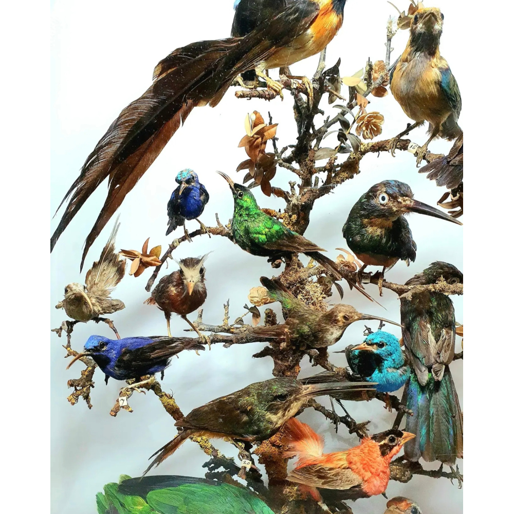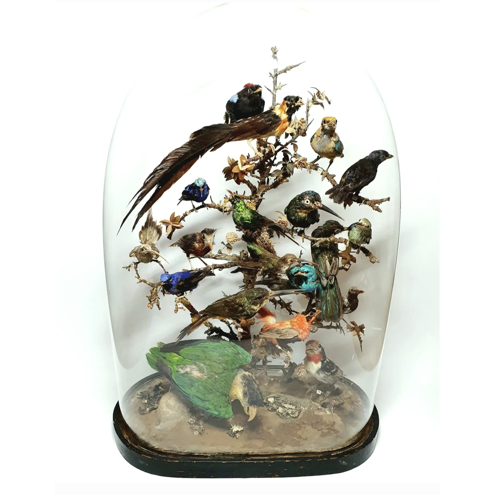 Victoriaanse Stolp Met 19 Opgezette Vogels