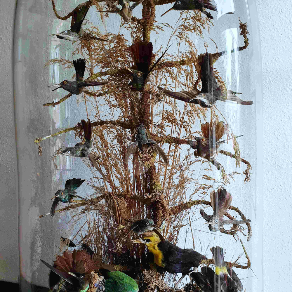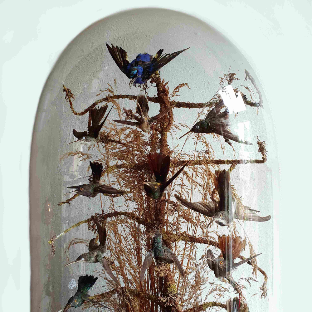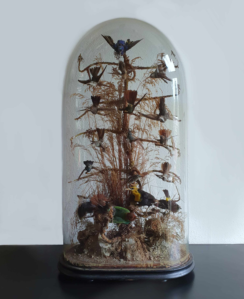 Victoriaanse Stolp Met Opgezette Vogels, Waaronder 14 Opgezette Kolibri's