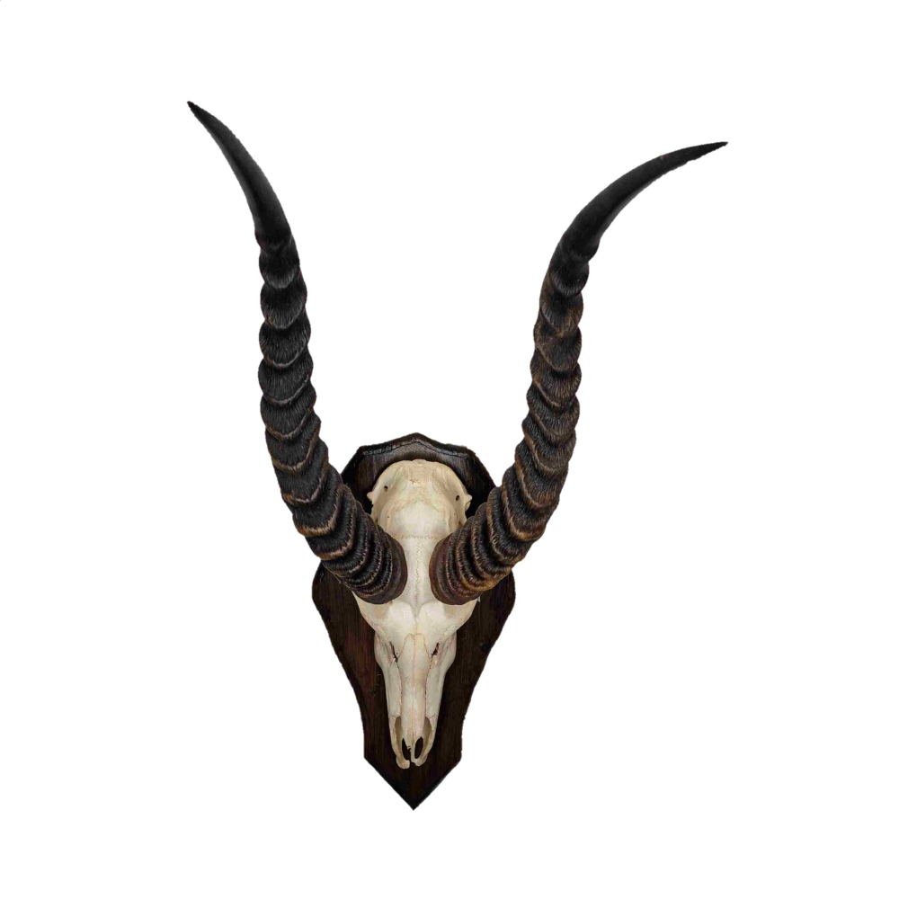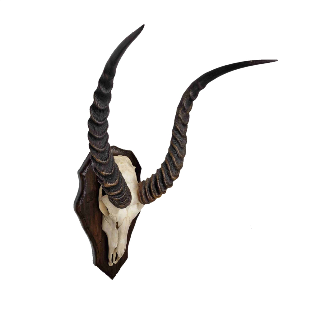 Bovenschedel puku antilope op houten schild